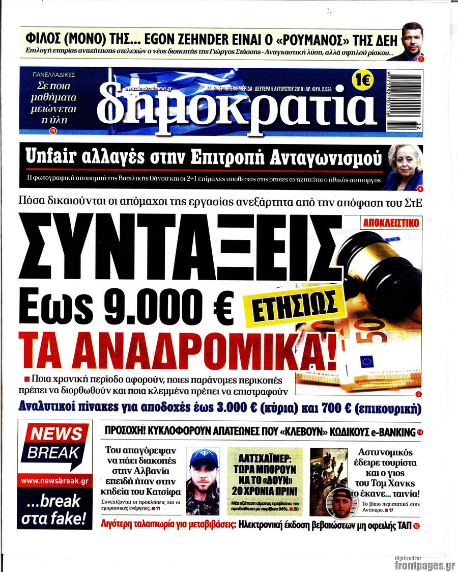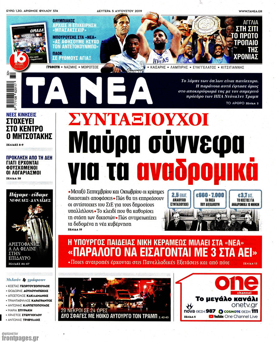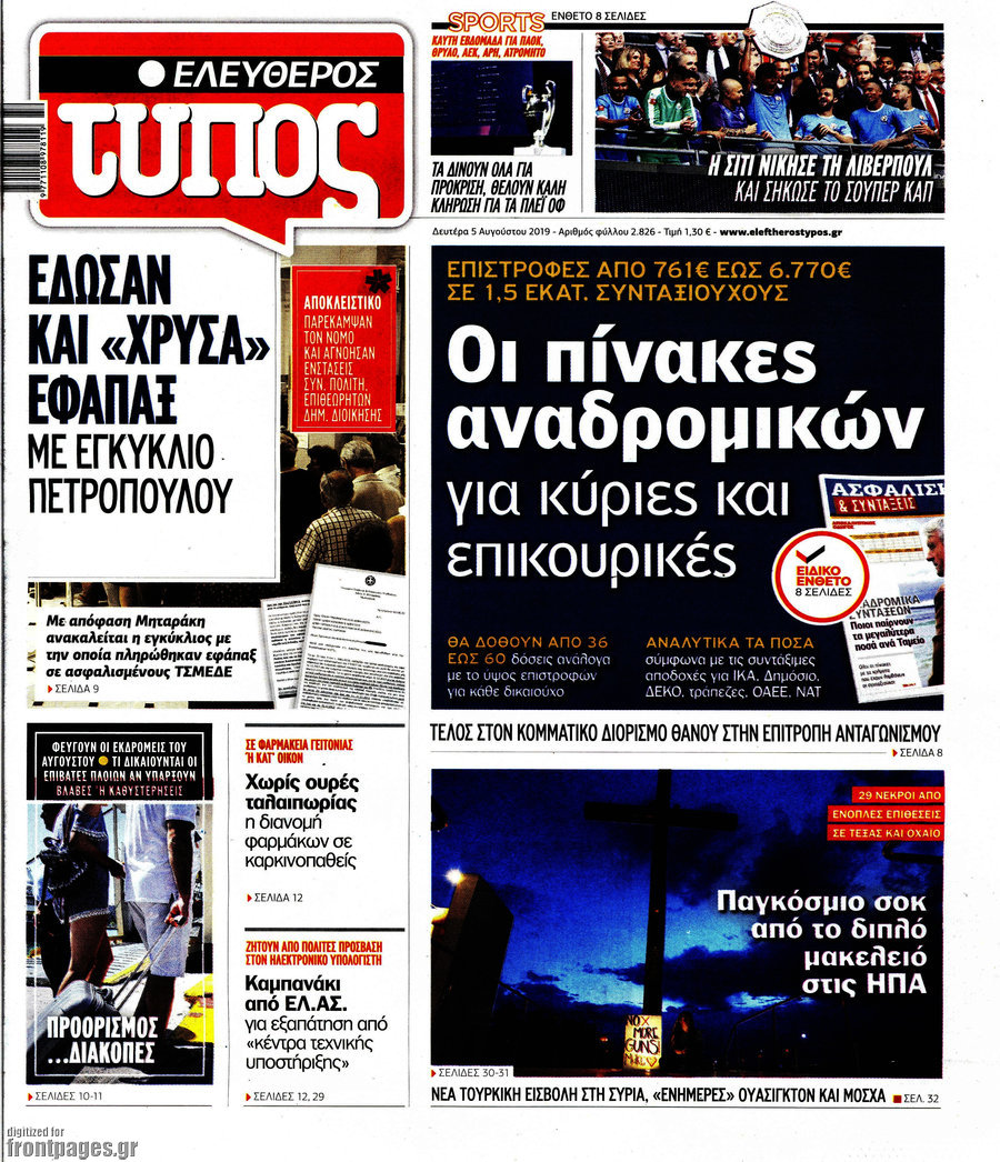 Τα αναδρομικά των συνταξιούχων και το… μέλλον τους φιγουράρουν στα σημερινά πρωτοσέλιδα των εφημερίδων.